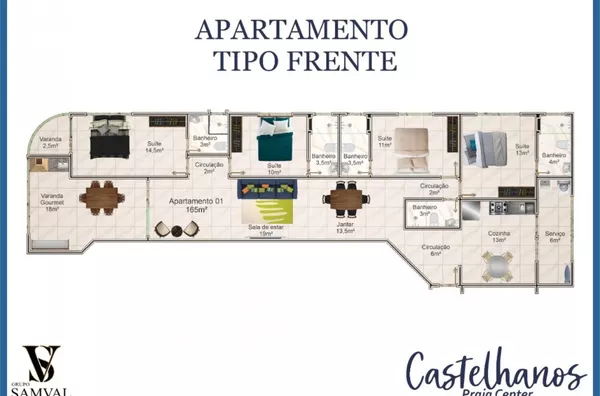 . Apartamento de frente para o Mar com 4 quartos, sendo 4 suítes, 3 vagas de garagem, varanda gourmet com 165 M2 no primeiro andar com mais uma área de 70 M2