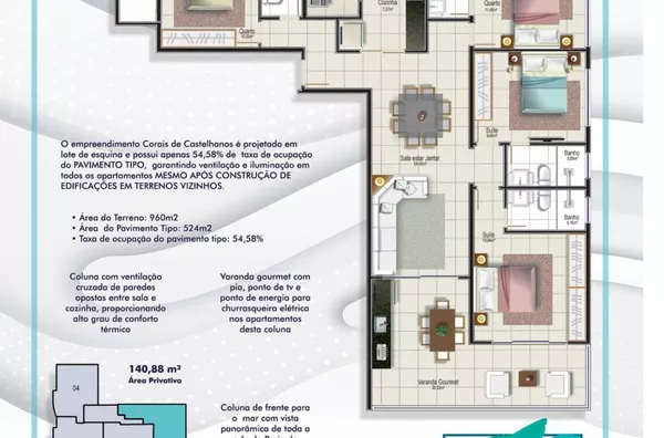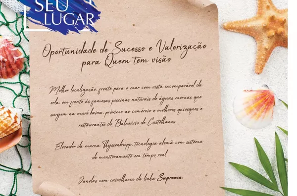 PARA VOCÊ QUE PRIMA EM OPORTUNIDADE DE SUCESSO E VALORIZAÇÃO DO SEU MAIOR BEM, TAL EMPREENDIMENTO DO RESIDENCIAL CORAIS CASTELHANOS, POSSUI A MELHOR LOCALIZAÇÃO, FRENTE PARA O MAR COM VISTA INCOMPARÁVEL DA ORLA, EM FRENTE ÀS FAMOSAS PISCINAS NATURAIS DE ÁGUAS MORNAS QUE SURGEM NA MARÉ BAIXA, PRÓXIMO AO COMÉRCIO E MERLHORES QUIOSQUES E RESTAURANTES DO BALNEÁRIO DE CASTELHANOS