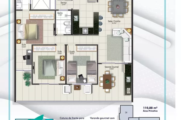 . Varanda Gourmet contará com (Pia, Ponto de TV e Ponto de Energia Elétrica para Churrasqueira Elétrica nos apartamentos das colunas 01, 02 e 03;