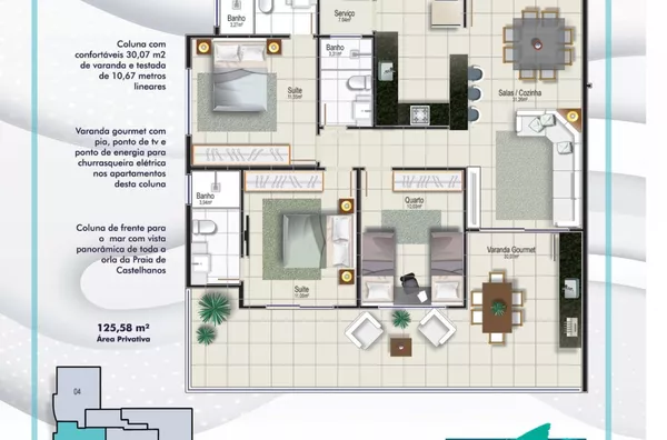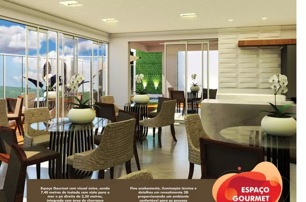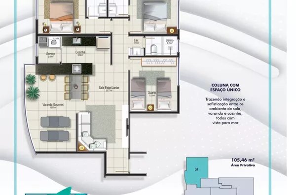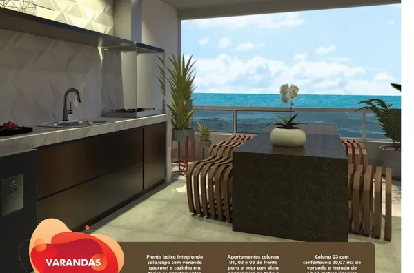 . Coluna 04 - com espaço único, trazendo integração e sofisticação entre os ambientes (sala, varanda e cozinha) TODOS COM VISTA PARA O MAR;