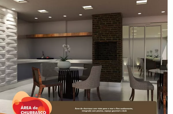 . Área de Churrasco com vista para o mar e fino acabamento, integrada com piscina, espaço gourmet e deck;